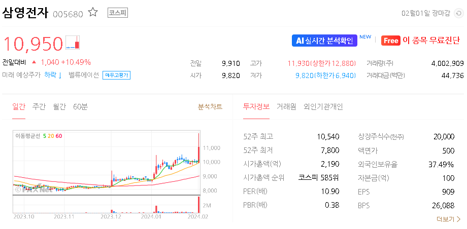 삼영전자 주식 결론
