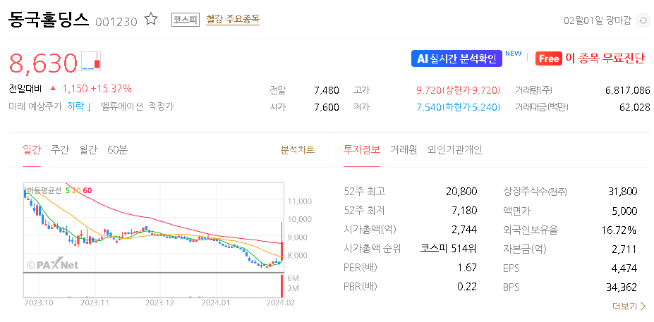 동국홀딩스 주가 분석