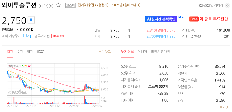 와이투솔루션 주가 분석