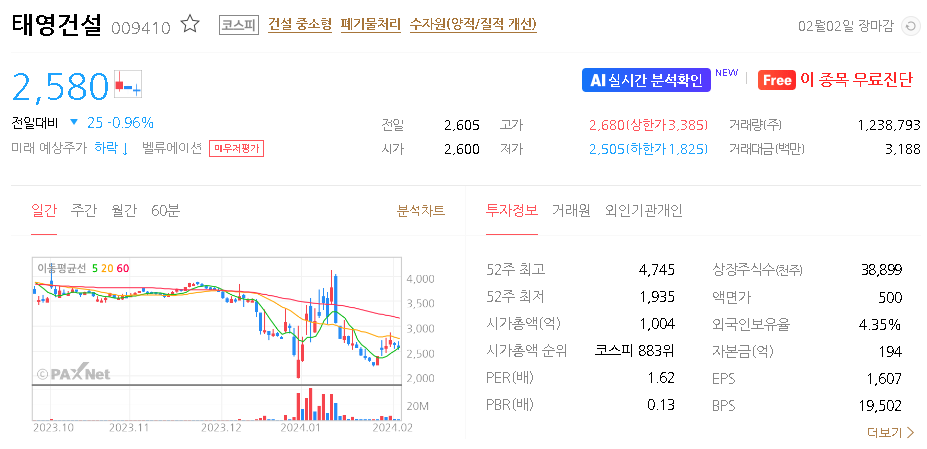 태영건설 주가 분석