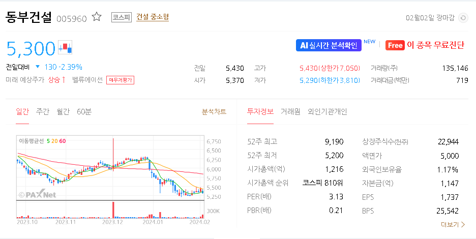 이 글에서는 동부건설 주가 전망과 목표 주가, 기업 정보에 대해서 설명합니다. 주식 투자에서 핵심은 미래의 기업 가치를 예상하고 선제적으로 움직이는 것입니다. 투자 대상을 결정하기 전에 현재 기업의 현황과 수치를 검토하는 것이 필요합니다. 동부건설 주식의 주요 현황과 투자 정보를 확인하시고 주식 투자에 유용한 정보들을 한 곳에 정리해두었으니 투자 전에 확인하시기 바랍니다.
