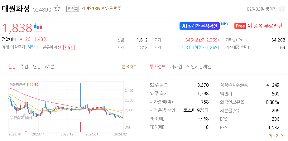 대원화성 주가 분석
