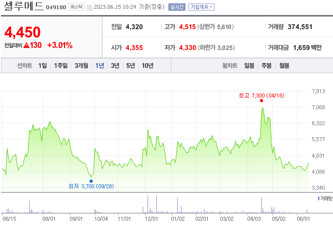 이 글에서는 셀루메드 주가 전망과 목표 주가, 기업 정보에 대해서 설명합니다. 주식을 알아보기 전에 기업의 현재 주가와 재무 상태에 관해서 살펴보는 것은 매우 중요합니다. 셀루메드 주식의 주요 현황과 투자 정보를 확인하시고 지금 시장 흐름을 살펴보겠습니다.