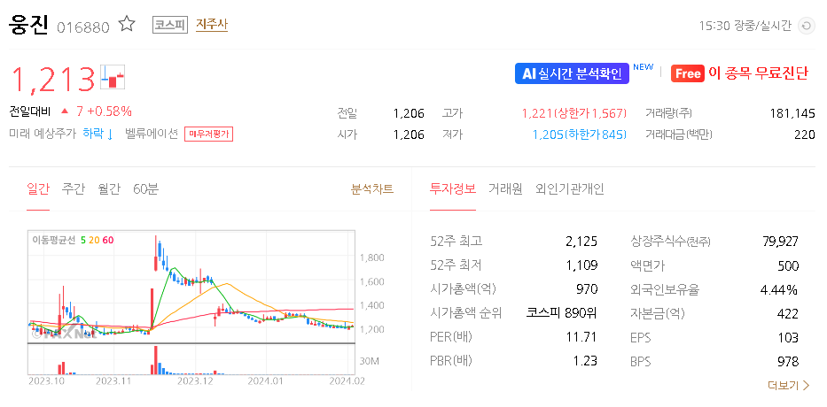 웅진 주가 분석