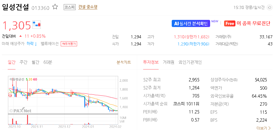 일성건설 주가 분석