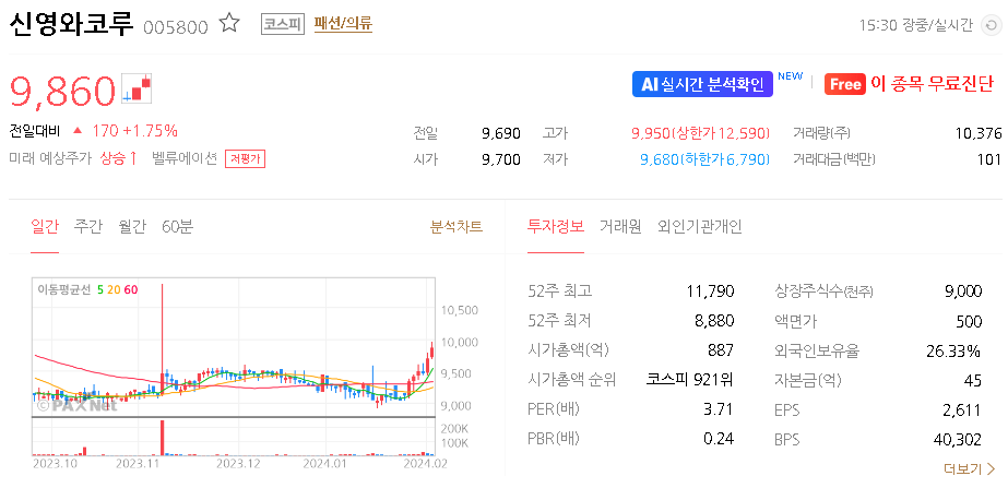 신영와코루 가치 분석