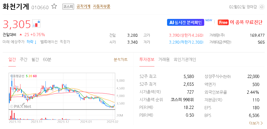 이 글에서는 화천기계 주가 전망과 목표 주가, 기업 정보에 대해서 설명합니다. 주식 투자의 핵심은 현재의 기업 가치보다는 미래의 가치를 예측하며 먼저 대응하는 것입니다. 투자 대상을 결정하기 위해 먼저 현재 기업 상태와 수치를 검토해야 합니다. 화천기계 주식의 주요 현황과 투자 정보를 확인하시고 주식 투자를 고민하고 계시다면 유용한 정보들을 모아 놓은 자료를 확인해보세요.