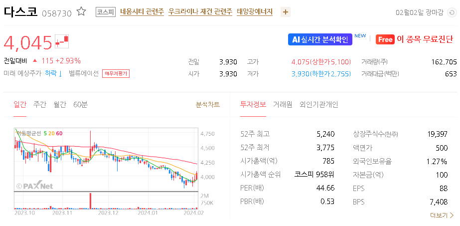 다스코 주가 분석