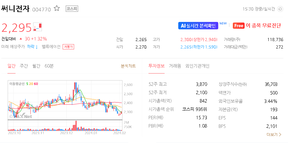 써니전자 주가 분석