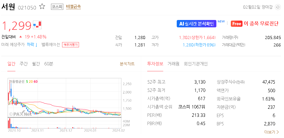 서원 주가 분석