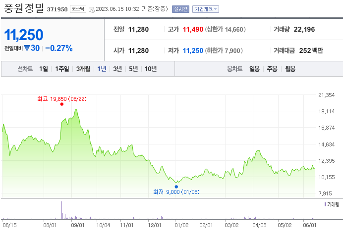 이 글에서는 풍원정밀 주가 전망과 목표 주가, 기업 정보에 대해서 설명합니다. 주식을 제대로 하기에 앞서 기업 정보를 확인하고 주가 정보에 대해 살펴보는 것이 굉장히 중요합니다. 풍원정밀 주식의 주요 현황과 투자 정보를 확인하시고 현재 시장에서의 위치를 분석해 보겠습니다.