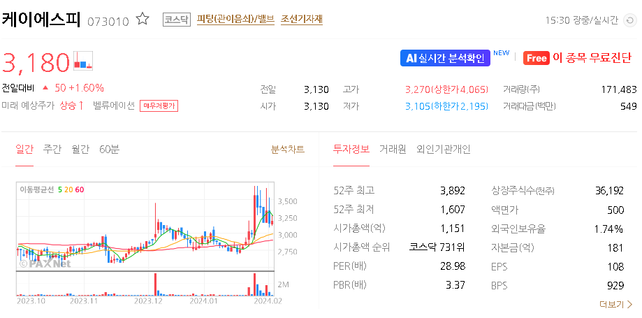 케이에스피 주가 분석