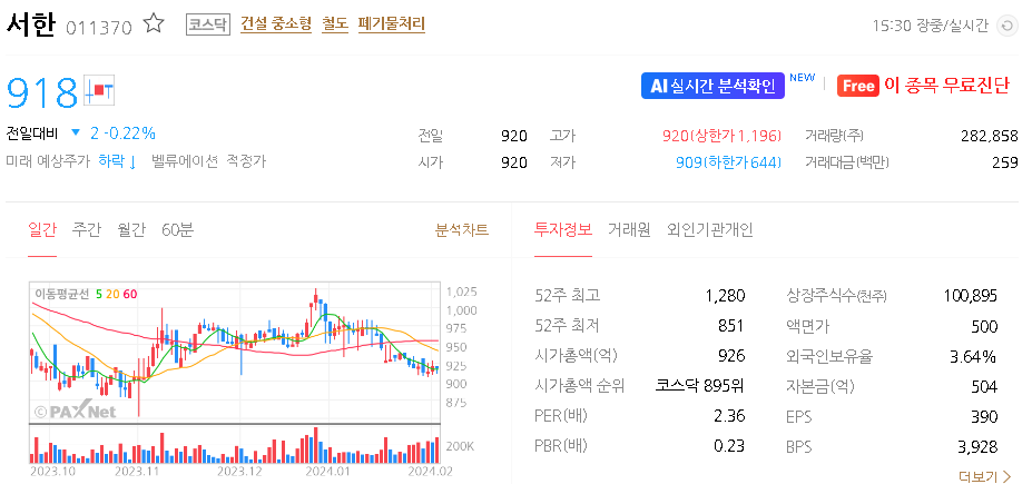 이 글에서는 서한 주가 전망과 목표 주가, 기업 정보에 대해서 설명합니다. 주식 시장에서 중요한 것은 미래의 기업 가치를 예측하고 선제적으로 움직이는 것입니다. 투자할 종목을 고르기 전에 현재 기업의 현황과 데이터를 확인하는 것이 필요합니다. 서한 주식의 주요 현황과 투자 정보를 확인하시고 주식 투자에 도움이 될 만한 정보들을 모아 놓았으니 투자를 고려하실 때 참고하세요.