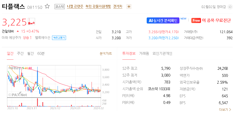 티플랙스 주가 분석