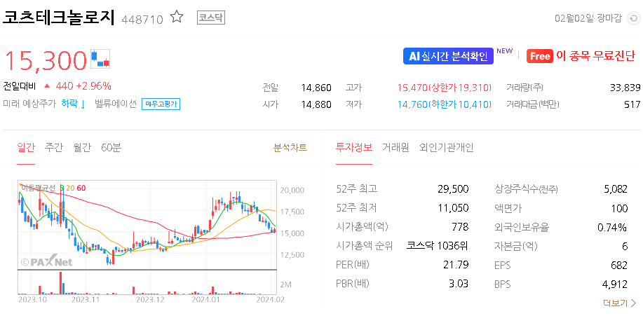 코츠테크놀로지 주가 분석