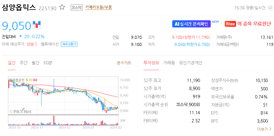 삼양옵틱스 주가 분석