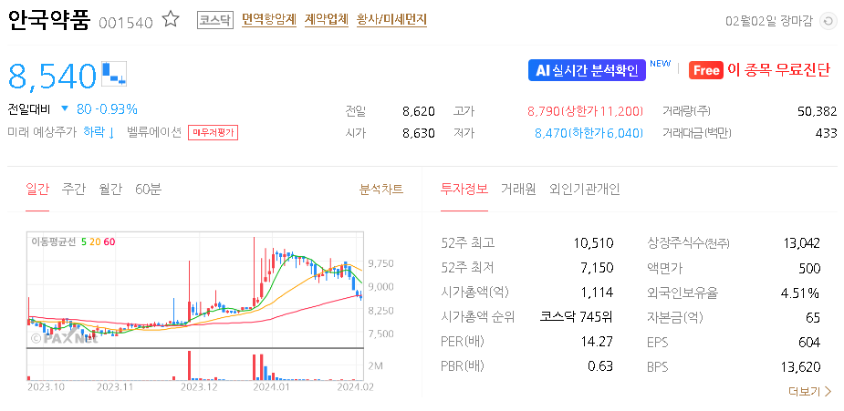안국약품 주가 분석