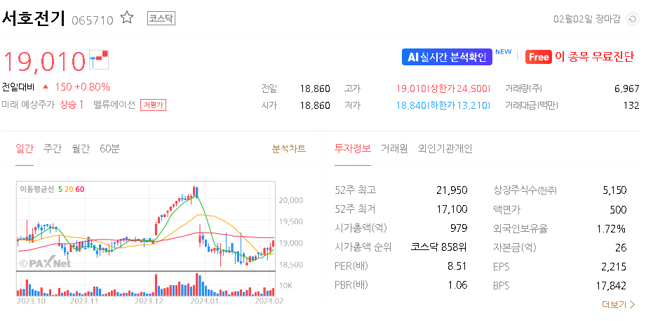 서호전기 주가 분석
