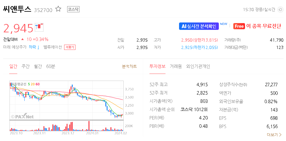 씨앤투스 가치 분석