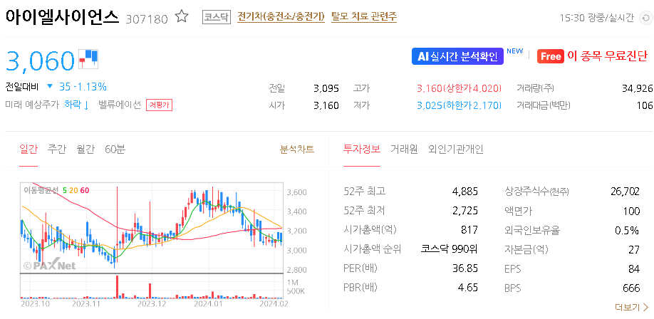 아이엘사이언스 주가 분석