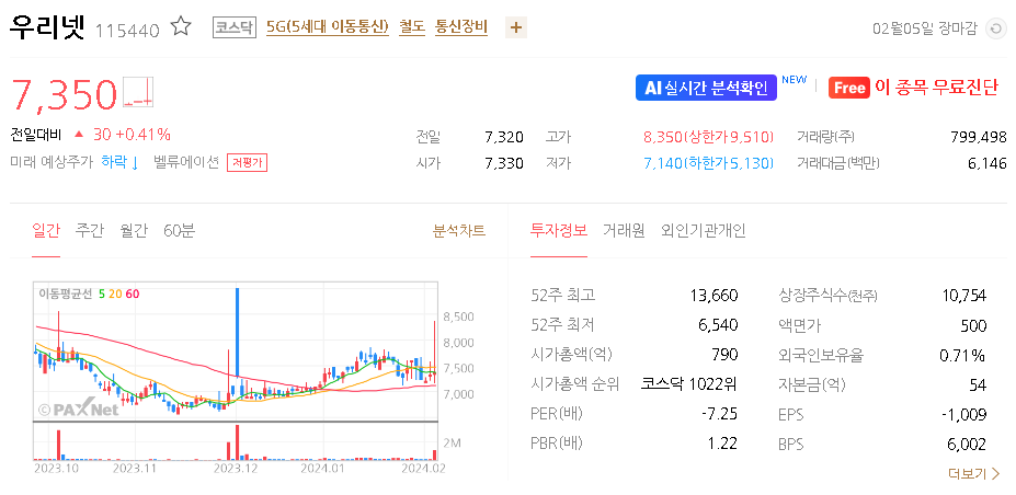 우리넷 주가 분석