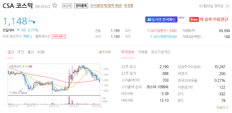 CSA 코스믹 주가 분석
