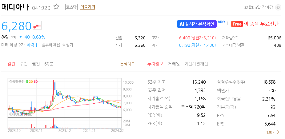 메디아나 주가 분석