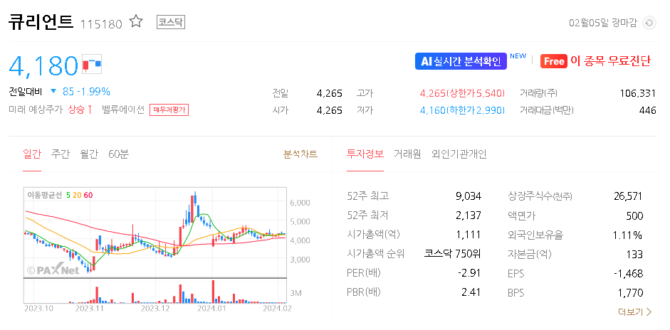 큐리언트 주가 분석