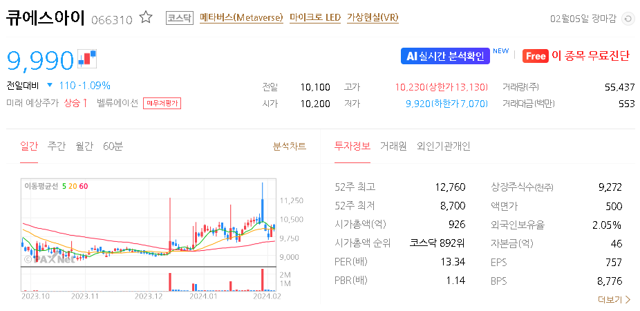 큐에스아이 가치 분석