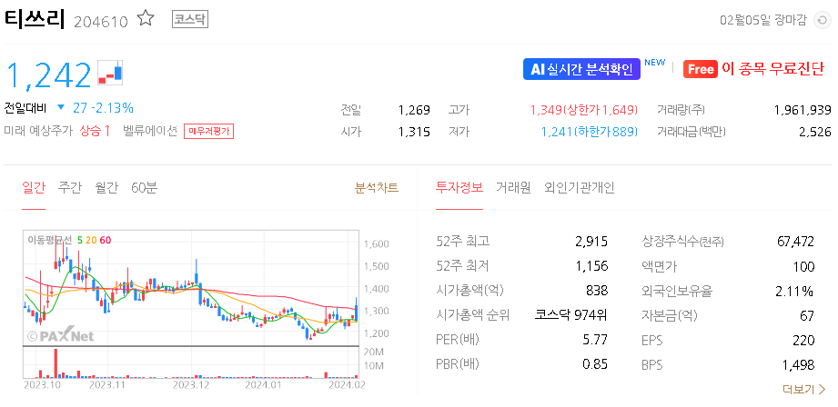 티쓰리 주가 분석