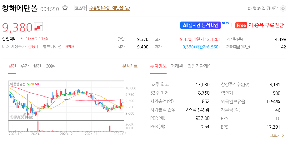 창해에탄올 주가 분석