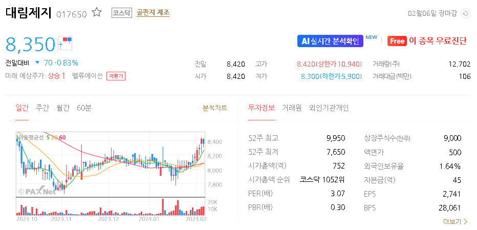 대림제지 가치 분석