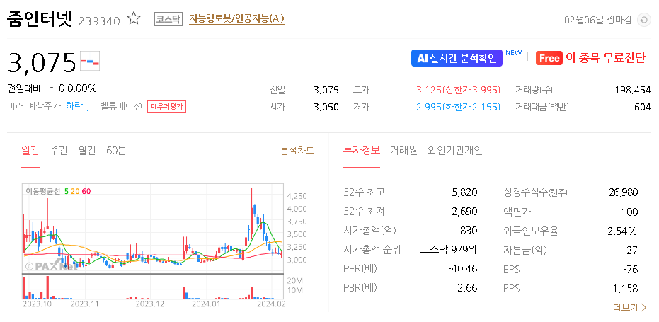 줌인터넷 주식 결론