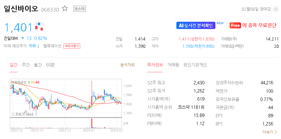 이 글에서는 일신바이오 주가 전망과 목표 주가, 기업 정보에 대해서 설명합니다. 주식 시장에서 중요한 것은 미래의 기업 가치를 예측하고 선제적으로 움직이는 것입니다. 투자할 종목을 고르기 전에 현재 기업의 현황과 데이터를 확인하는 것이 필요합니다. 일신바이오 주식의 주요 현황과 투자 정보를 확인하시고 주식 투자에 도움이 될 만한 정보들을 모아 놓았으니 투자를 고려하실 때 참고하세요.