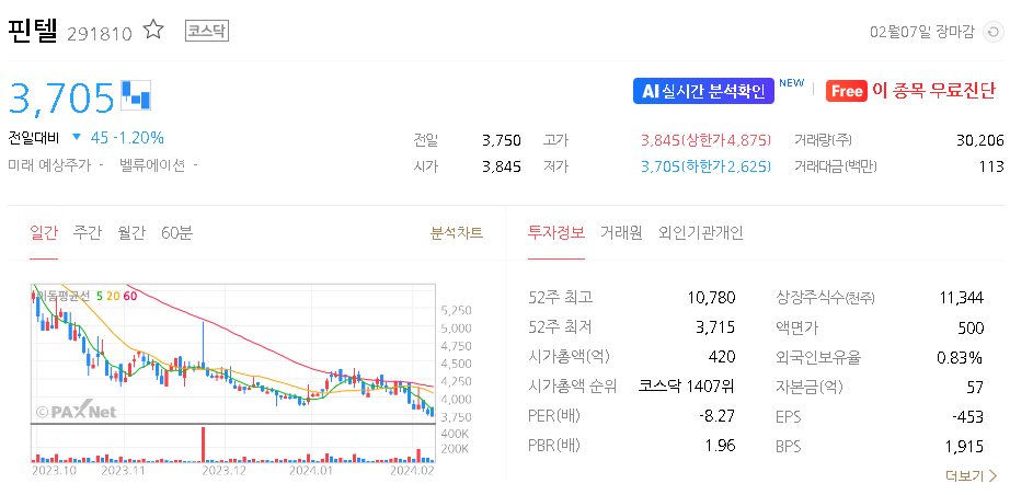 핀텔 주가 분석