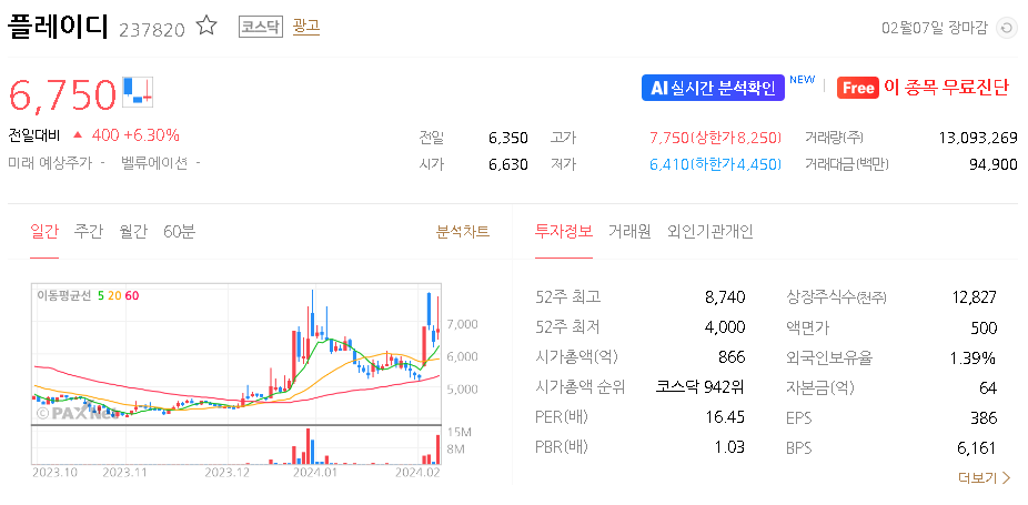 이 글에서는 플레이디 주가 전망과 목표 주가, 기업 정보에 대해서 설명합니다. 주식 시장에서 중요한 것은 미래의 기업 가치를 예측하고 선제적으로 움직이는 것입니다. 투자 대상을 선택하기 전에 현재 기업의 현황과 데이터를 확인하는 것이 필요합니다. 플레이디 주식의 주요 현황과 투자 정보를 확인하시고 주식 투자에 도움이 될 만한 정보들을 모아 놓았으니 투자 시 참고하시기 바랍니다.