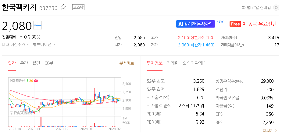 한국팩키지 주식 결론