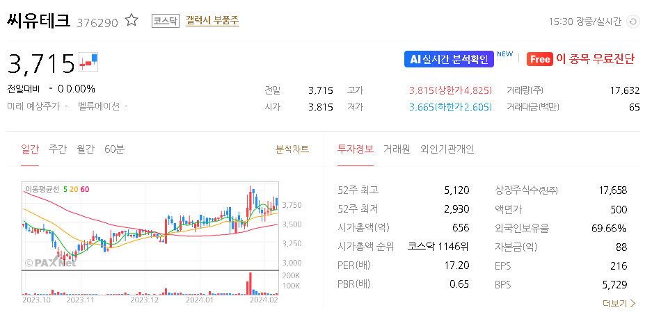 이 글에서는 씨유테크 주가 전망과 목표 주가, 기업 정보에 대해서 설명합니다. 주식 투자의 중심은 미래의 기업 가치를 예측하고 선제적으로 움직이는 것입니다. 투자할 종목을 고르기 전에 현재 기업 상태와 지표를 살펴야 합니다. 씨유테크 주식의 주요 현황과 투자 정보를 확인하시고 주식 투자에 도움이 될 만한 정보들을 모아 놓았으니 투자를 고려하실 때 참고하세요.