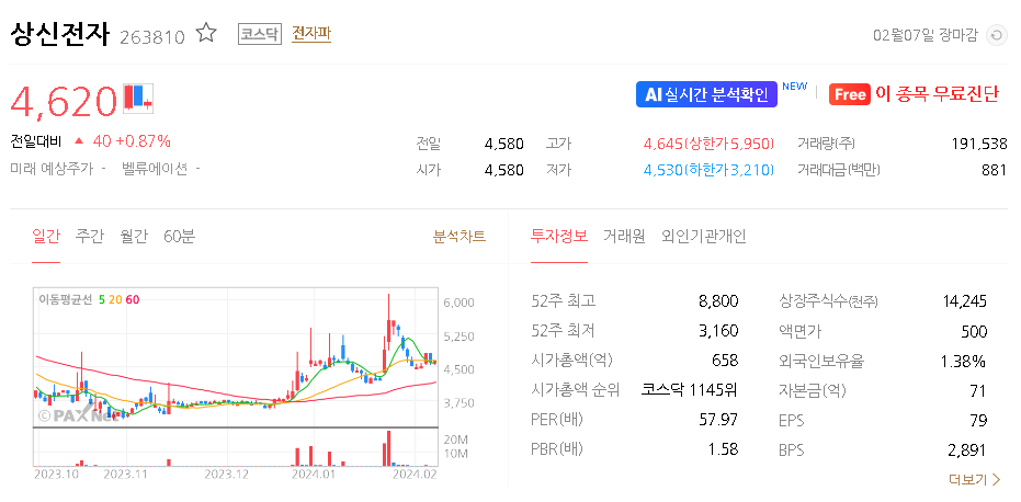 상신전자 주가 분석