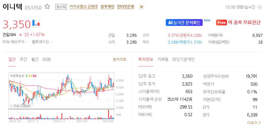 이니텍 주가 분석