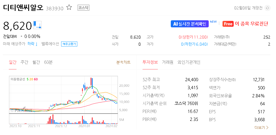 디티앤씨알오 주가 분석