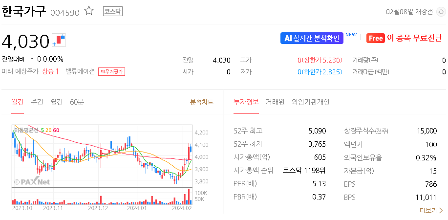 한국가구 주가 분석