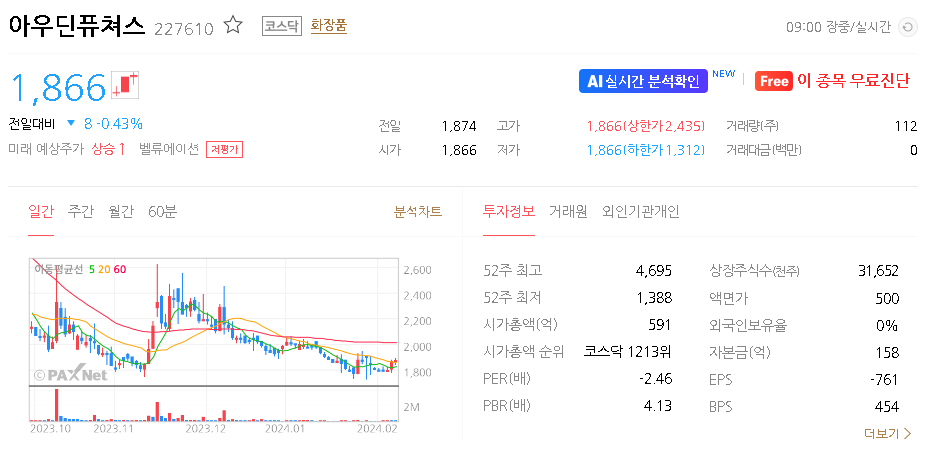 아우딘퓨쳐스 주식 결론