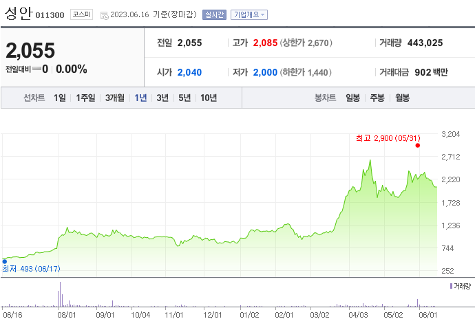 이 글에서는 성안 주가 전망과 목표 주가, 기업 정보에 대해서 설명합니다. 주식을 시작하기 위해서는 기업 주가와 재무 현황표에 대해서 살펴보는 것이 중요합니다. 성안 주식의 주요 현황과 투자 정보를 확인하시고 주가 흐름을 파악해 보겠습니다.