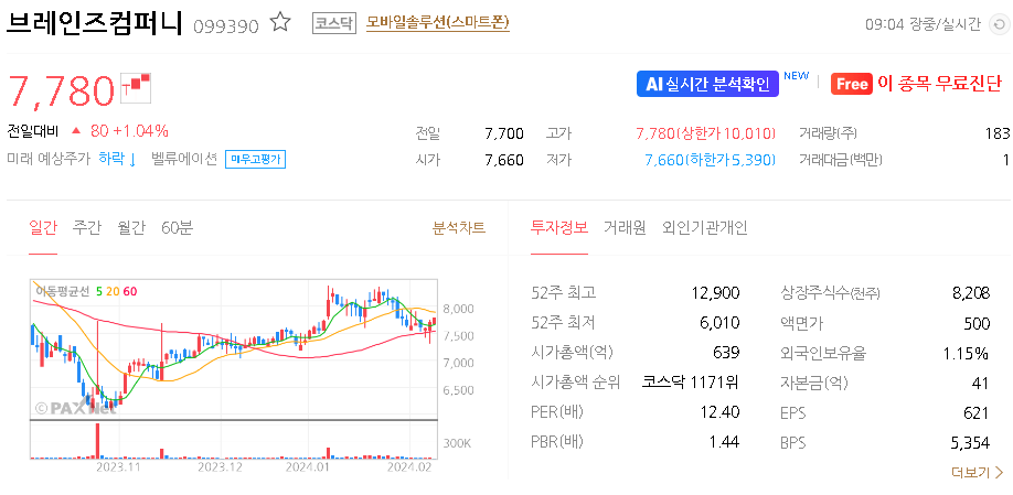 이 글에서는 브레인즈컴퍼니 주가 전망과 목표 주가, 기업 정보에 대해서 설명합니다. 주식 거래에서 중요한 부분은 현재 기업 가치보다는 미래의 기업 가치를 예측하고 먼저 행동하는 것입니다. 투자할 종목을 고르기 전에 현재 기업의 상황과 지표를 살펴보는 것이 중요합니다. 브레인즈컴퍼니 주식의 주요 현황과 투자 정보를 확인하시고 주식 투자에 도움을 줄 자료들을 모아 두었으니 투자에 도움을 받으시길 바랍니다.