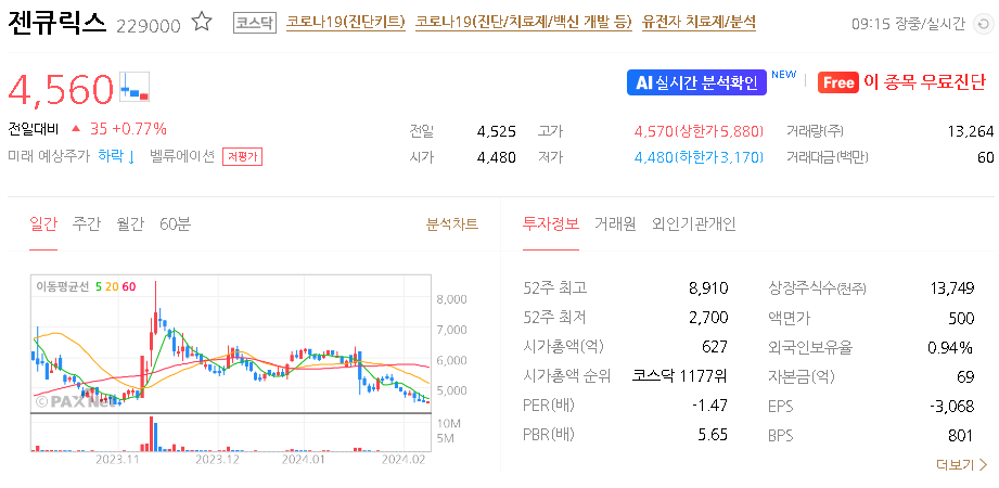 이 글에서는 젠큐릭스 주가 전망과 목표 주가, 기업 정보에 대해서 설명합니다. 주식 거래에서 주목해야 할 점은 미래의 기업 가치를 예측하고 먼저 움직이는 것입니다. 투자 대상을 선택하기 전에 현재 기업 상황과 지표를 살펴보아야 합니다. 젠큐릭스 주식의 주요 현황과 투자 정보를 확인하시고 주식 투자에 도움이 되는 정보들을 모아 제공하니 투자에 도움을 받으실 수 있을 것입니다.
