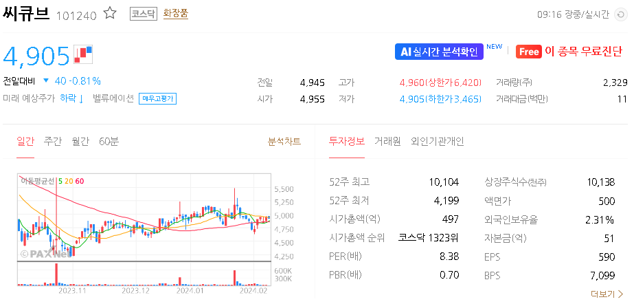 씨큐브 주가 분석