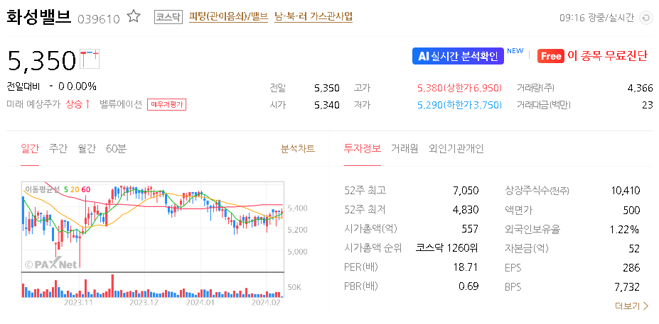 이 글에서는 화성밸브 주가 전망과 목표 주가, 기업 정보에 대해서 설명합니다. 주식 거래에서 중요한 부분은 현재 기업 가치보다는 미래의 기업 가치를 예측하고 먼저 행동하는 것입니다. 투자할 종목을 고르기 전에 현재 기업의 상황과 지표를 살펴보는 것이 중요합니다. 화성밸브 주식의 주요 현황과 투자 정보를 확인하시고 주식 투자에 도움이 될 수 있는 정보들을 모아 제공하오니 참고하시면 도움이 될 것입니다.
