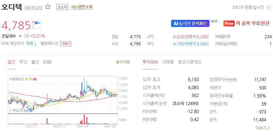 오디텍 주가 분석