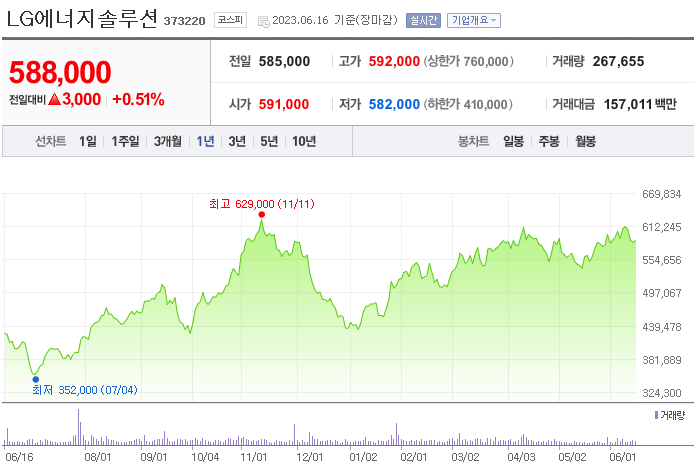 이 글에서는 LG에너지솔루션 주가 전망과 목표 주가, 기업 정보에 대해서 설명합니다. 주식에 투자하기 전에는 정확한 기업 정보와 주가 현황에 대해 살펴보는 것은 굉장히 중요합니다. LG에너지솔루션 주식의 주요 현황과 투자 정보를 확인하시고 주가 흐름을 정리해 보겠습니다.